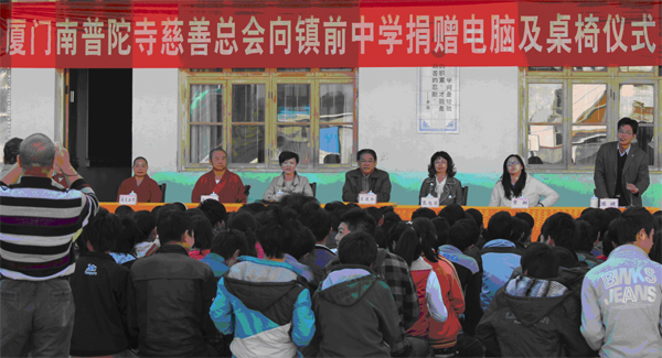 在本次捐赠活动中,厦门南普陀寺慈善总会向镇前中学捐赠液晶电脑50台、电脑桌椅50套,截止目前50台电脑已经安装完毕并且投入使用。慈善组还为岭腰乡卫生院捐赠彩超一台,并且专门组织岭腰乡卫生院相关人员去学习如何使用彩超机,目前该仪器已经投入使用。这改变了以往岭腰乡无彩超的历史,也给村民们带来了很大的便利。慈善组也为铁山镇两个村的饮用水工程建设送去了善款。饮用水工项目共投入资金35万元,其中福建省慈善总会为铁山镇东涧村捐赠6万元,厦门南普陀寺慈善总会为南涧村捐赠7万元,并叮嘱乡镇领导班子要把钱落到实处,做到真正惠农惠民,该项目经过四个多月紧张施工,现已竣工并投入使用,解决了东、南涧两个村现有461户2065人的饮水问题。捐赠仪式上镇前中学、岭腰卫生院、铁山镇分别向福建省慈善总会、厦门市南普陀寺慈善总会回赠纪念牌匾。至此,此次捐赠仪式圆满结束。