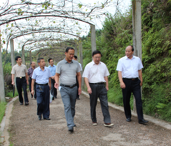 听完介绍后,谢先文一行兴致勃勃地参观了村容村貌。走在800米长的葡蔔长廊下,篮乡长边走边向谢会长,介绍景区现状及远景规划:这里从2007年开始实施规划,一步一个脚印,工作踏实,进展顺利,五年多来全部实现了预期目标任务。现引进冠闽开犮公司,三年内景区再投入1.2亿,建设从六都直达上金贝旅游公路,长6公里;建旅游一条街;畲族文化表演场等等。