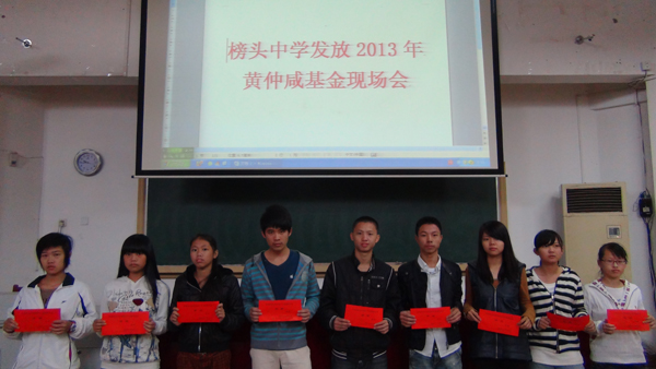 仙游榜头中学发放2013年度黄仲咸教育奖学金