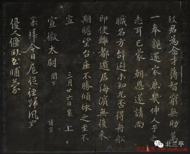 蔡襄(1012—1067)“宋四家”之一。字君谟,福建仙游人,北宋天圣八年(1030)进士。蔡襄学识渊博,书艺高深。“宋四家”中,蔡襄年龄辈份,应在苏、黄、米之前。从书法风格上看,苏轼丰腴跌宕,黄庭坚纵横拗崛,米芾俊迈豪放,他们书风自成一格。苏、黄、米都以行草、行楷见长,而喜欢写规规矩矩楷书的,还是蔡襄。蔡襄书法以其浑厚端庄,淳淡婉约,自成一体。展卷蔡襄书法,顿觉春风拂面,充满妍丽温雅的气息。蔡襄书法在其生前就受时人推崇,极负盛誉。最推崇他书艺的人首推苏东坡、欧阳修。苏东坡在《东坡题跋》中指出:“独蔡君谟天资既高,积学深至,心手相应,变态无穷,遂为本朝第一。然行书最胜,小楷次之,草书又次之……又尝出意作飞白,自言有翔龙舞凤之势,识者不以为过。”欧阳修对蔡襄书法的评价,真是到了无以复加的地步:“自苏子美死后,遂觉笔法中绝。近年君漠独步当世,然谦让不肯主盟。”黄庭坚也说:“苏子美、蔡君漠皆翰墨之豪杰。”北宋科学家沈括在《梦溪笔谈》中评论蔡襄的草书曰:“以散笔作草书,谓之散草,或曰飞草,其法皆生于飞白,自成一家。存张旭、怀素之古韵,有风云变幻之势,又纵逸而富古意。”