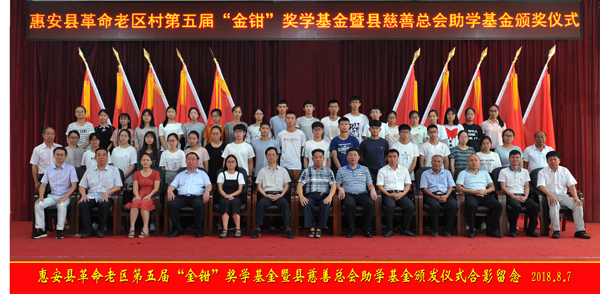 8月7日上午,惠安县革命老区村第五届“金钳”基金暨县慈善总会助学金颁发仪式,在惠安县老年活动中心举行。