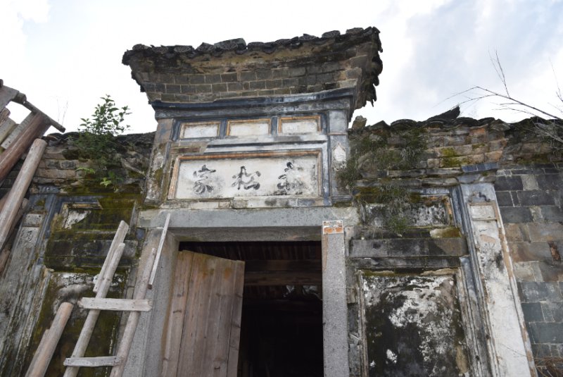 村口右侧靠山的一座百年老宅,气度不凡矗立在我们眼前。深宅大院虽然老态龙钟,但其建筑规模和精湛工艺让人惊叹。矿物彩描绘的门楼和琉璃窗花镶嵌的照壁上有几对书法精美的楹联,当年古宅主人的学养修为、襟怀气魄跃然而出:“一脉清河归舍北,两仪瑞气溢山南”、“读雪耕云事业,樵山钓水人家”、“落霞与孤鹜齐飞,秋长共长天一色”。