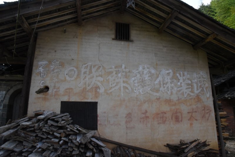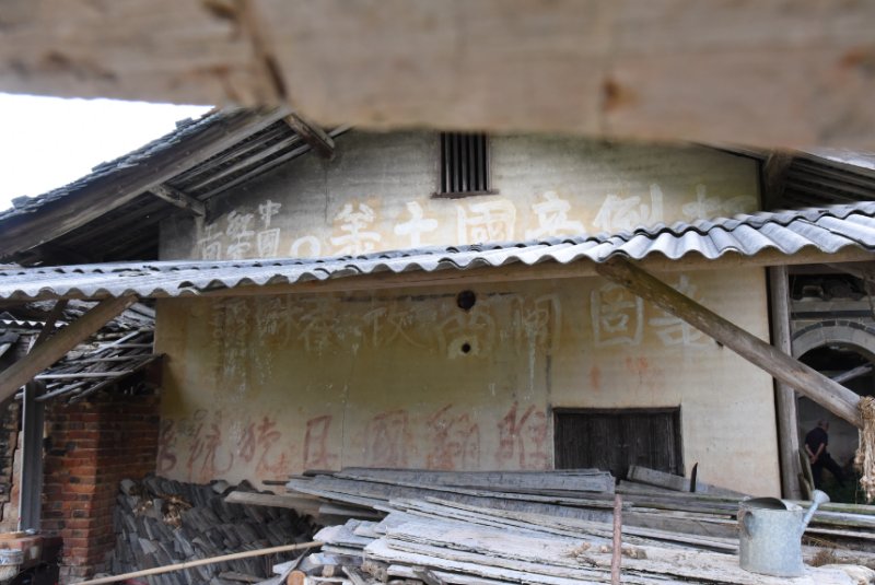 古宅大门的青砖门面上,一左一右用白色石灰水书写的楷书大字“扩大红军”、“消灭团匪”依稀可见。两边横屋内外的沙灰包墙墙体上,分别是用石灰和朱砂水书写有“实行土地革命”、“扩大闽西赤色区域”、“男女平等”、“打倒帝国主义”、“推翻国民党统治”、“没收土豪的财产分给穷人”、“反对国民议会”、“巩固闽西政权”、“武装保护苏联”等十几条标语。