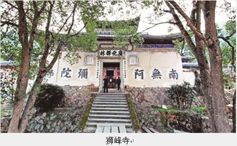 福安民间流传着这样一句话:“不见狮峰不见寺。”狮峰寺,始建于唐景福元年(892年),明万历壬子年(1612年)重建。前望峻倪巅,后枕狮子峰。四至有天鹅来朝、金鸡石、卧牛石、聪明泉、菩提叶等10景。朝暮钟鼓相参,梵宇肃清,胜境绝伦,为禅人栖心之所,乃文人向往之地,壁石之间题咏甚繁。“邑中丛林之冠”,可以当仁弗让也!