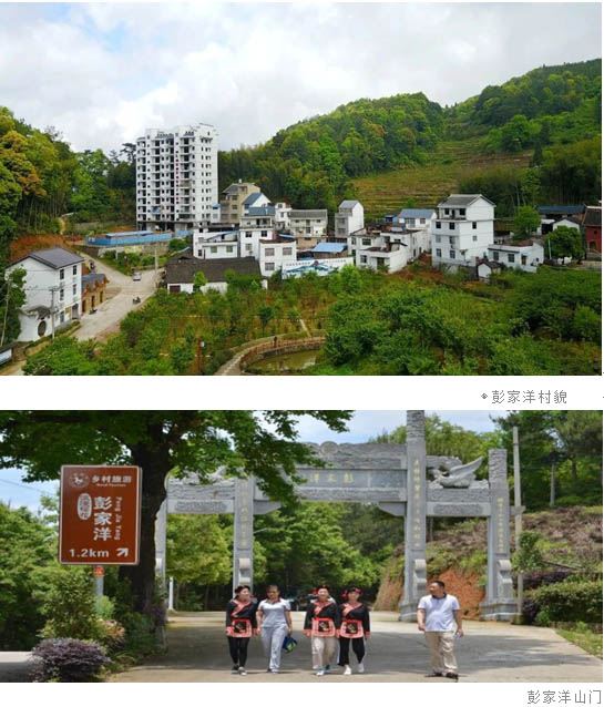 彭家洋村风景秀丽,有“仙岫晴云”和“铜冠双松”景点,福安至周宁、政和以及浙西的千年古道穿村而过。村里瞄准这一优势,统筹整合多项资金,建设了带有休闲回廊的民族团结文化广场、象征民族团结的石牌坊,因地制宜种植400多株金丝楠木等名木古树,引种数百株樱花、美国红火箭紫薇花等观光植物,致力打造具有畲族村落特色的美丽家园。同时,以畲族文化为载体,发挥民族文化人才优势,积极打造畲族文化传承基地。充分利用民族团结文化广场,举办畲族民歌对唱会,开展畲族婚嫁、祭祖表演、“山哈大席”、 民族文艺舞蹈表演等具有畲族特色的风情旅游文化活动,加快畲族文化活动成为美丽畲寨重要旅游文化标签,培育旅游新景点,增强对游客吸引力。