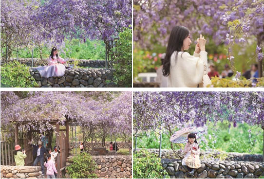 眼下,李花白、桃花红、菜花黄逐次在春光里退场,正当人们不禁“惆怅春归留不得”之时,在山清水秀的茜洋溪畔,数株紫藤树披着一袭紫袍款款而来,留住了春天的脚步,以一抹紫色的浪漫,演绎着林徽因笔下的“人间最美四月天”。