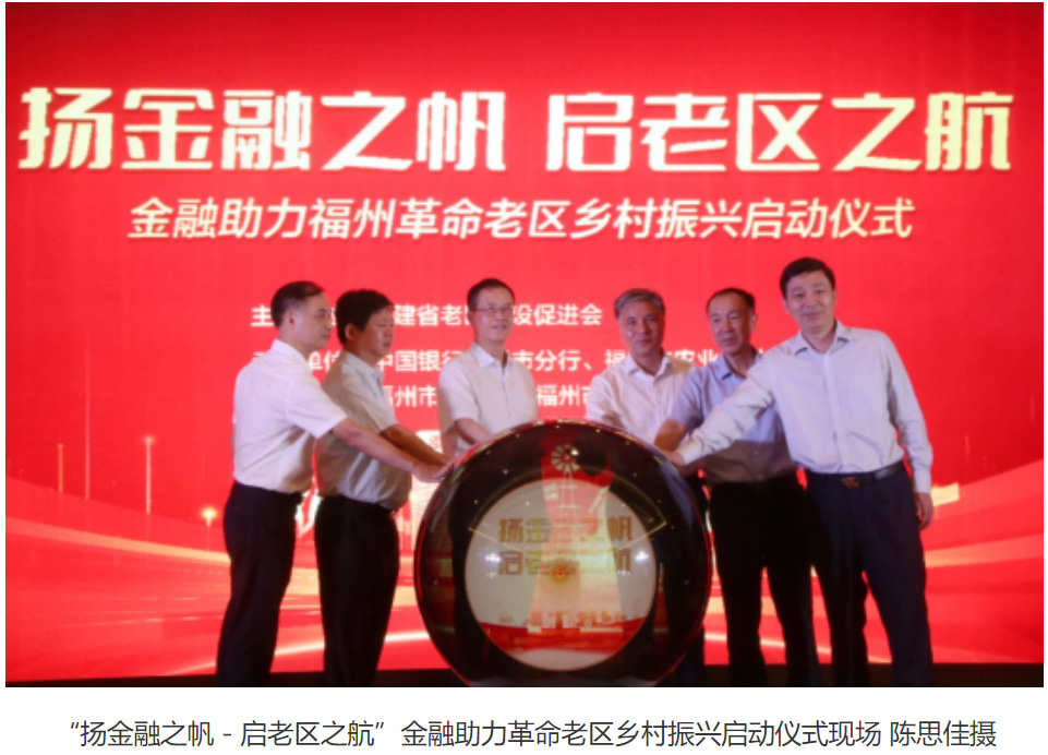 6月26日,在福建省老区建设促进会和福州市人民政府的牵头支持下,中国银行携手福州市农业农村局、福州市民政局及福州市老区建设促进会,在福州罗源举办“扬金融之帆-启老区之航”金融助力福州革命老区乡村振兴启动仪式。福建省老区建设促进会黄琪玉会长、梁晋阳常务副会长,福建省农业农村厅赖诗双副厅长、福州市人民政府林治良副市长、中国银行福建省分行刘超副行长参加仪式,福州市农业农村局、民政局、发改委、财政局、老区办、老促会、7个老区市区县分管领导,农业农村局有关领导及中国银行福建省分行、福州市分行相关机构负责人出席。