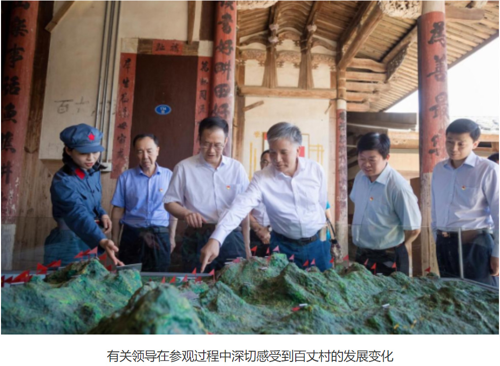 活动中,有关领导赴全国基层脱贫攻坚先进典型——罗源县百丈村参观调研,重温89年前中国工农红军北上抗日先遣队指挥攻克罗源县城事迹。