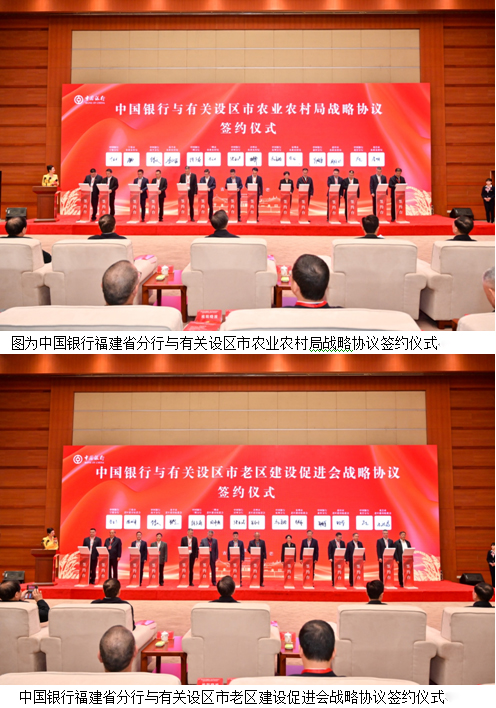 启动仪式上,省老区建设促进会、中国银行福建省分行、省农业农村厅和龙岩市委市政府领导分别致辞,并举行了中国银行福建省分行及辖内相关机构与省及各设区市老区建设促进会、省农业农村厅及各设区市农业农村局,龙岩中行与龙岩市各县(市、区)老区建设促进会、农业农村局战略协议签约,同时龙岩中行还与龙岩市8家农业产业化龙头企业进行签订贷款合同。